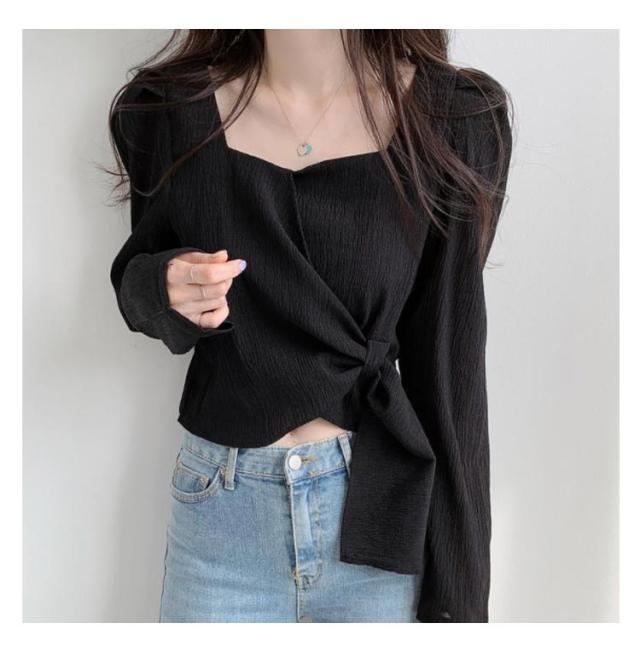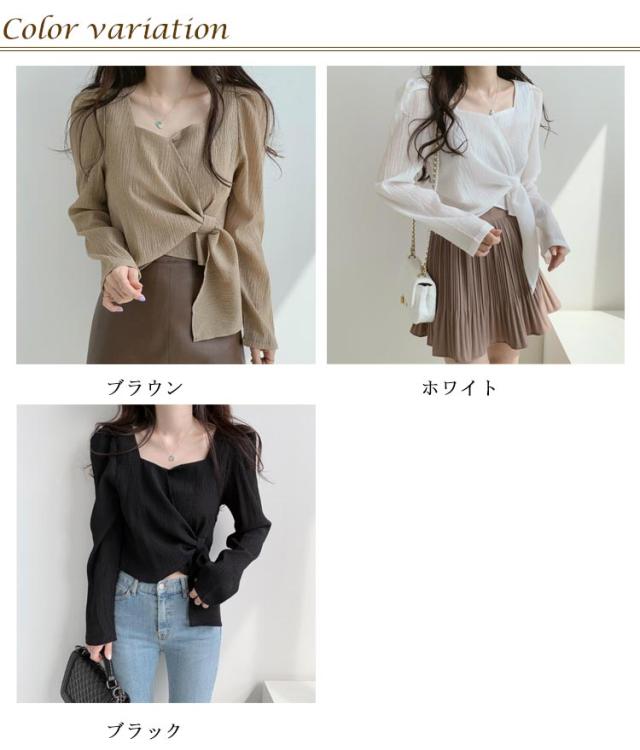 | 韓国風デザインのアンシンメトリーリボンのペンタゴンネックトップス。 ふんわりとしたパフスリーブがフェミニンでかわいい長袖ブラウス。 スクエアネックで上品に見えるデザインです? 大人の可愛さとカジュアルさを兼ね備えたトレンドアイテム。 スタイルアップ効果のあるショート丈だから脚長効果を強調する。 スカートと合わせて可愛らしい着こなしや、デニムと合わせてカジュアルに着るのもおすすめ◎ | |