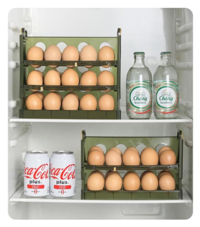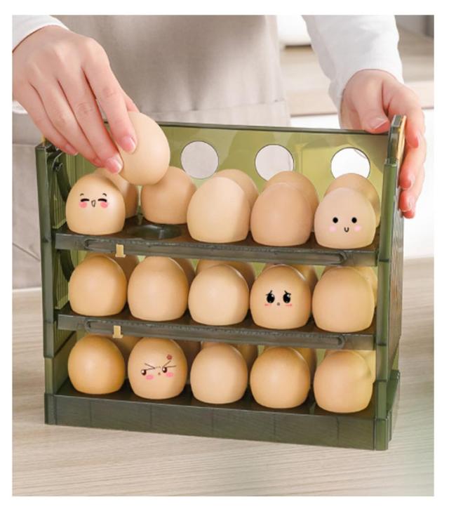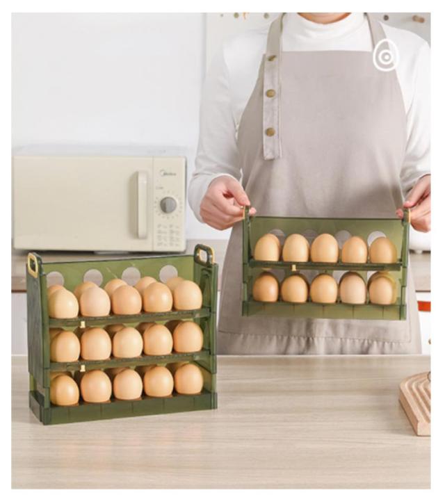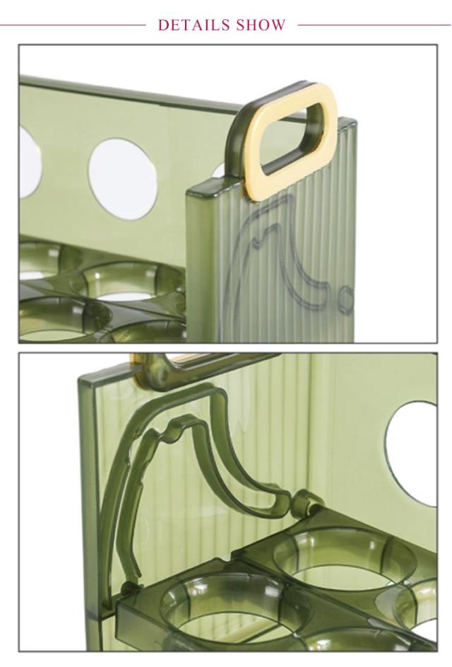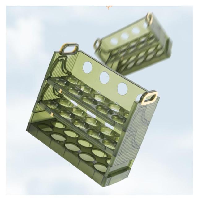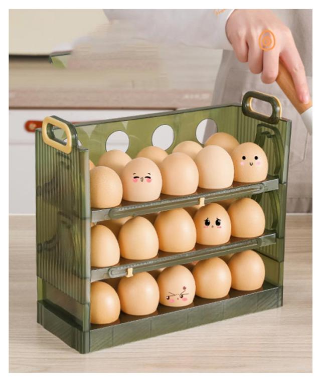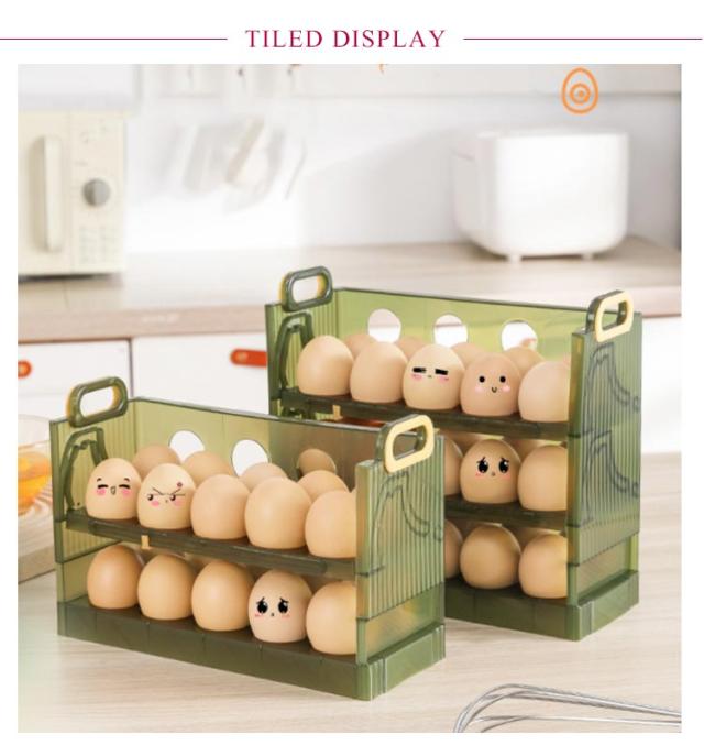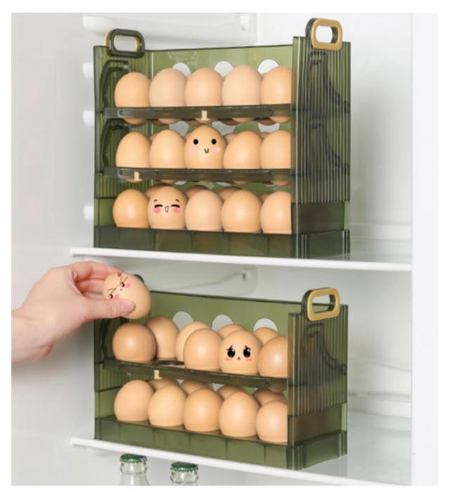 | 卵収納ボックスはフリップ式のデザインを採用しているので、卵が取り出しやすいです。 二層と三層構造の採用により、一気に2倍のスペースに。とても実用的です。 卵がずれないように設計されているため、ぶつかったり転がったりする心配がありません。 | |