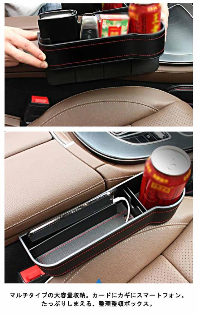 | 散らかる小物を、ササッと収納ボックス。 室内スッキリ、快適空間。マルチにしまえて、ドライブ快適。 マルチタイプの大容量収納。カードにカギにスマートフォン。たっぷりしまえる、整理整頓ボックス。 設置は一瞬。シートのすき間にはさむだけ。届いたその日に実装可能。手間暇いらずの収納ポケット。 | |