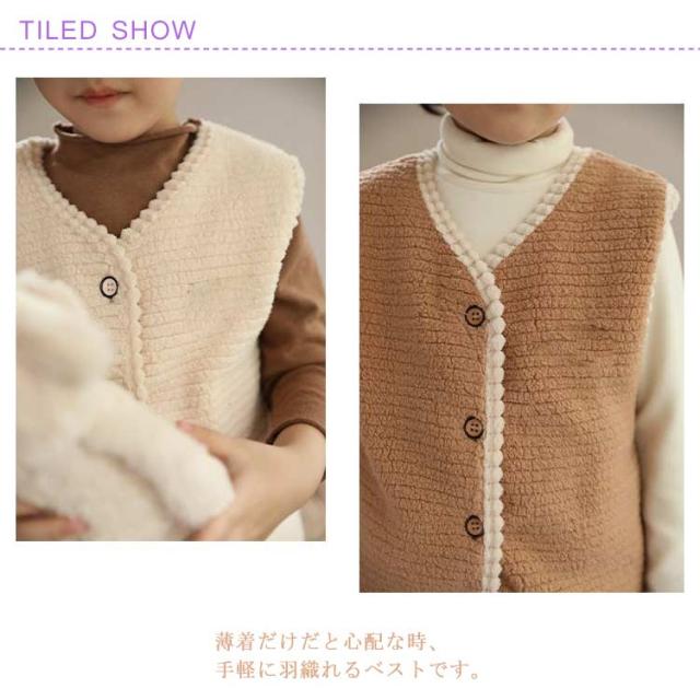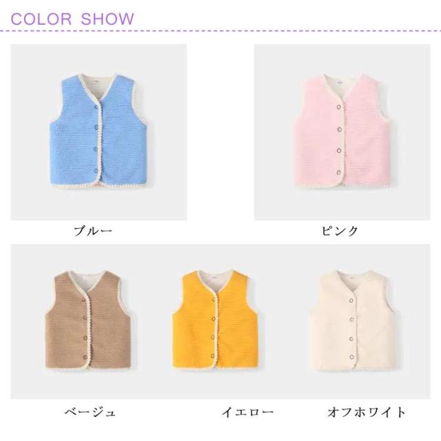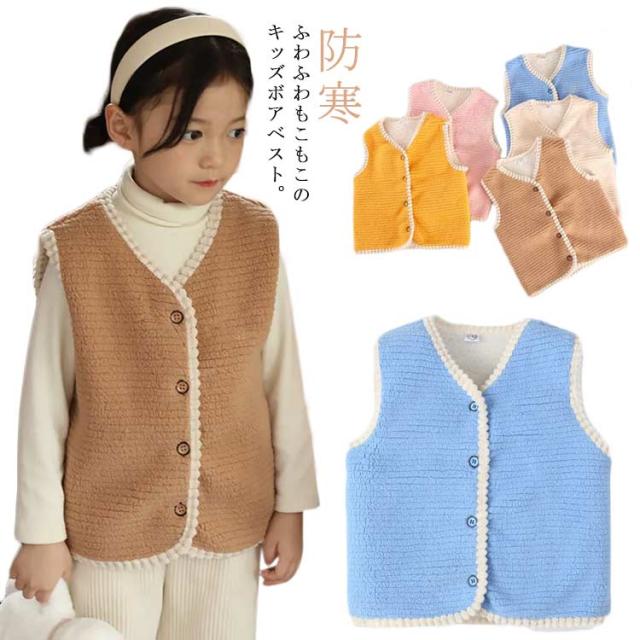 羽織り インナーベスト 上着 キッズ 秋冬 ベビー ベスト 子供服 ボアベスト 暖かい アウターベスト アウター 防寒 トップス キッズ 袖なし 可愛い 赤ちゃん 軽い 男の子 女の子 子供服 vネック 保育園 小学校 キッズベスト