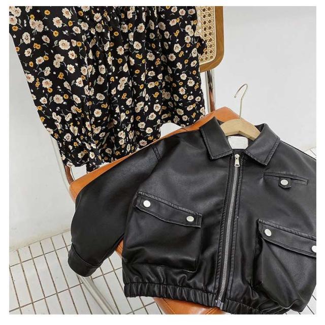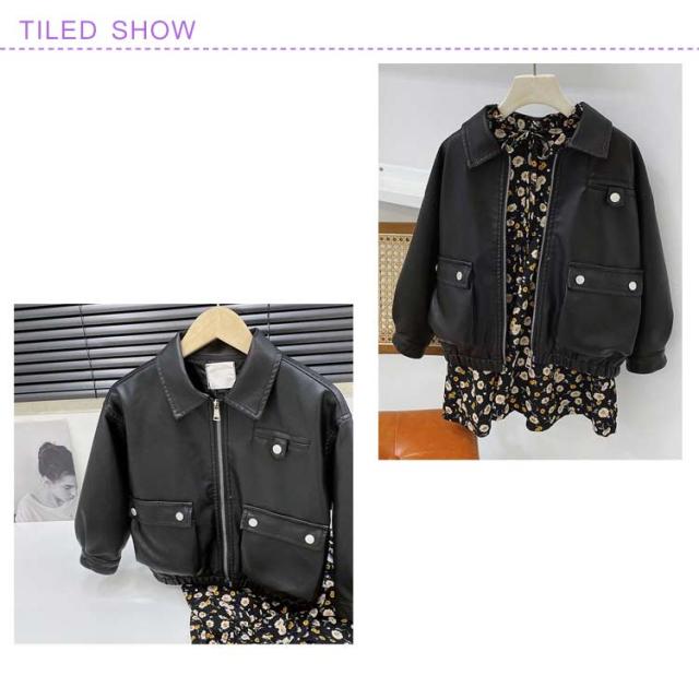 子供服 ジュニア 防寒 レザージャケット 女の子 長袖 アウター 革ジャン シンプル ライダースジャケット 秋コート 春秋 春コート PUジャケット 春秋 ショート丈 かっこいい シンプル お洒落 韓国 カジュアル コート ダンス 発表会 お出かけ