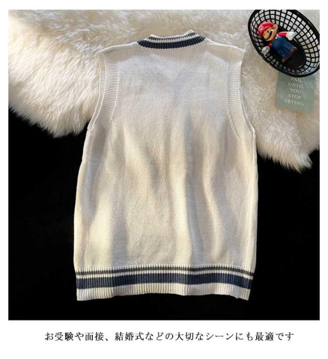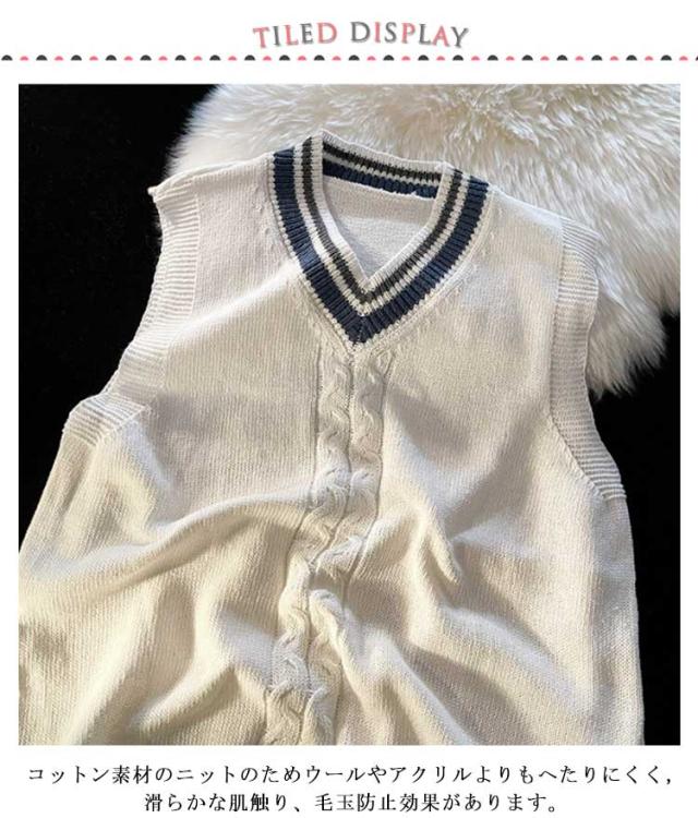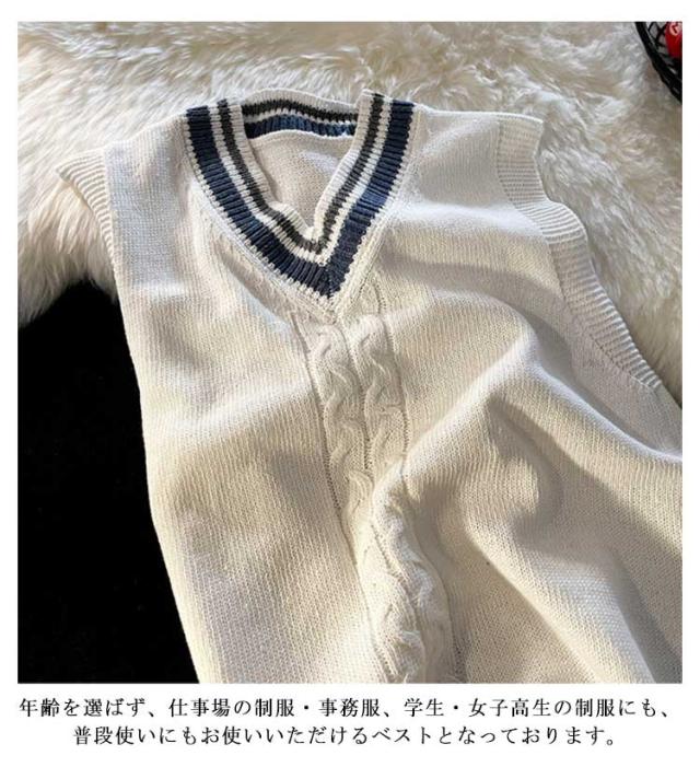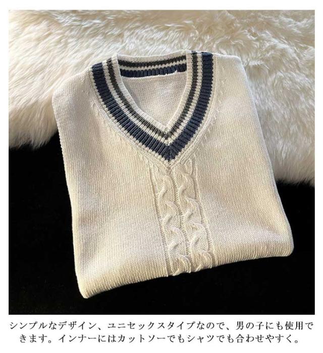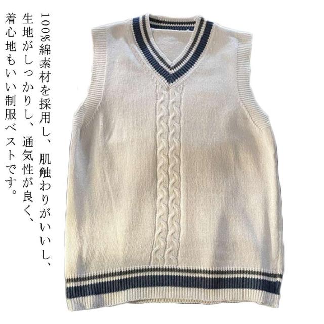 スクールセーター スクールベスト ニット ライン入りニットベスト 送料無料 綿100% Vネック ホワイト 年間使いやすい チョッキ 男女兼用 セーター 学生 制服 学生服 高校 中学 通学 学校