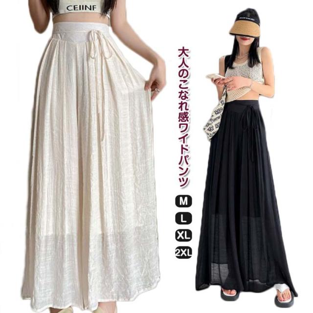 ボトムス ロングパンツ 着痩せ ウエストゴム ワイドパンツ 30代 体型カバー リネン風スカートパンツ レディース スカーチョ 着やせ 無地 ロング ガウチョパンツ 体形カバー ワンピスター 20代 スカンツ 40代 おしゃれ ワイド
