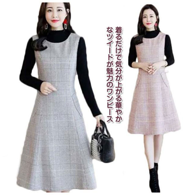 | 着るだけで気分が上がる華やかなツイードが魅力のワンピース 程よくシェイプされたタイト過ぎないシルエットと少し短めの丈がスタイルアップを叶えてくれます | |