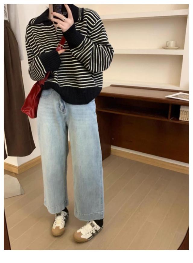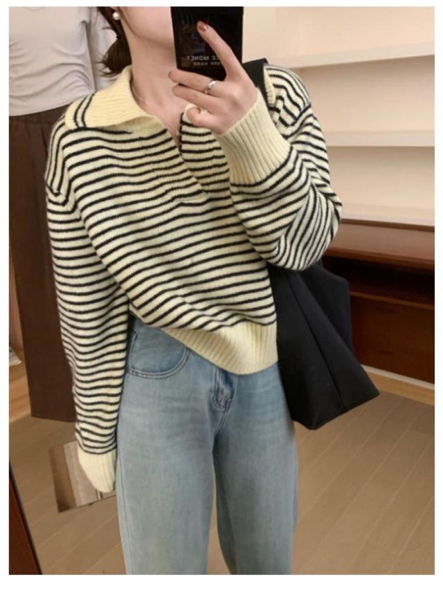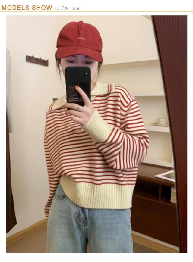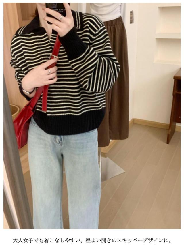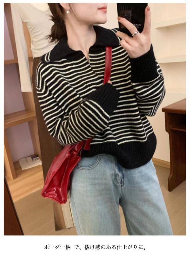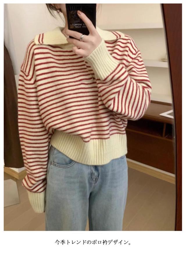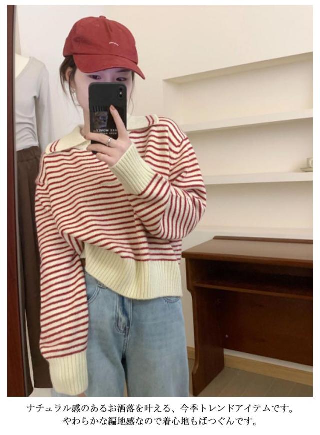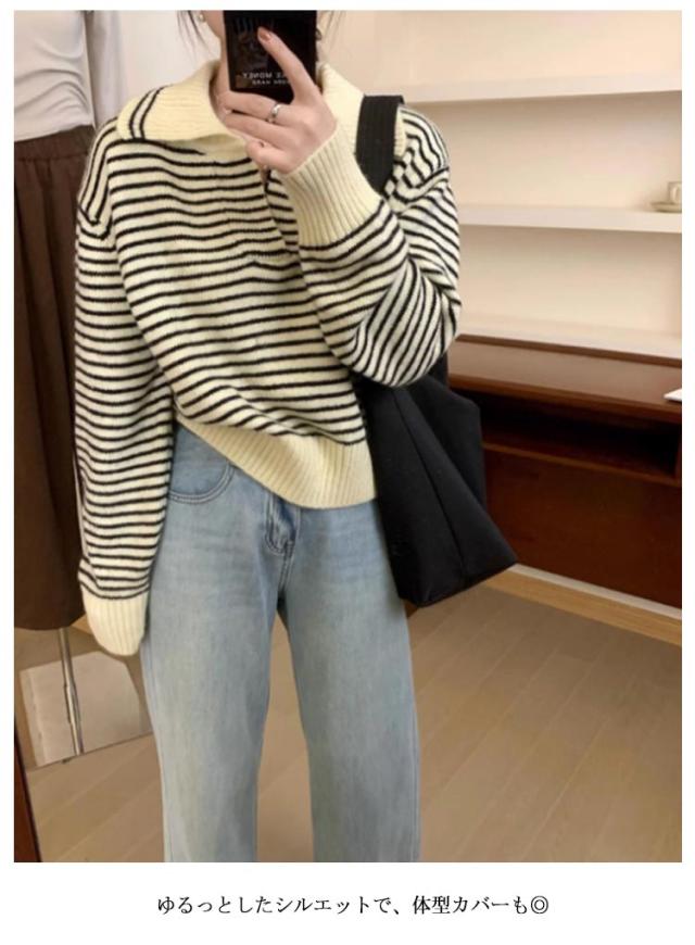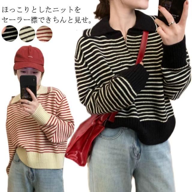 レディース 通勤 トップス ニットセーター vネック セーラー襟 セーター ボーダー柄 ゆったり 秋冬 ニット ニットトップス ニットウェア カットソー 厚手 カジュアル 大人 きれいめ 長袖 着痩せ 韓国 カットソー