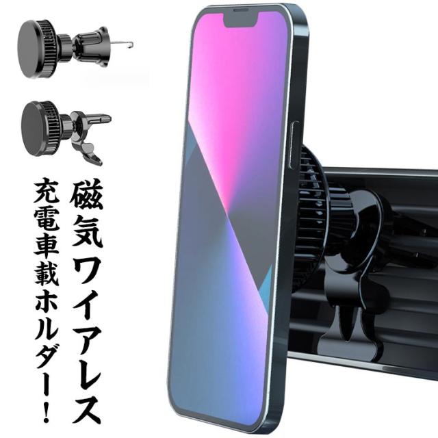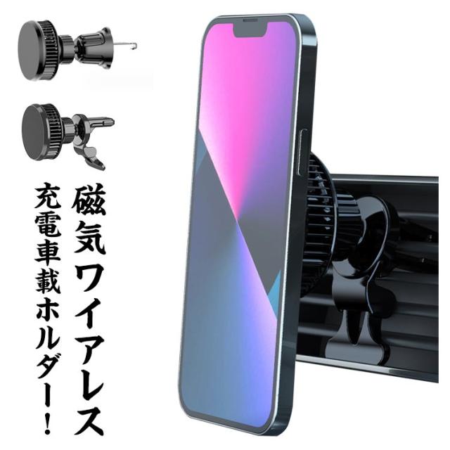 エアコン 車載スマホホルダー iPhone12 MagSafe対応 iPhone14車載 iPhone13Pro対応 送付無料 iPhone13 車載ワイヤレス充電器 マグネット式 繊維製 iPhone15 吹き出し口 磁石 iPhone15