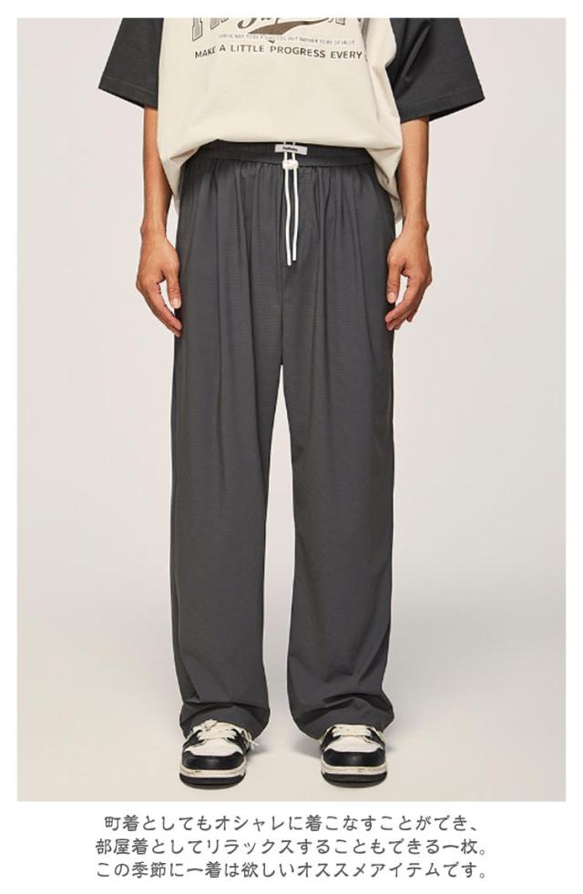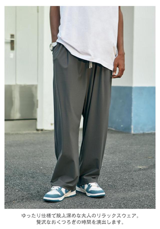 | 【商品名】ワイドパンツ 【サイズ】サイズ表 【素材】ナイロン、ポリウレタン 【特徴】 カッコイイワイドパンツが登場しました♪ ゆったり仕様で股上深めな大人のリラックスウェア。贅沢なおくつろぎの時間を演出します。ウエストはゴム&調節紐入り、イージーパンツタイプになっています。 日常動作を妨げずにノンストレスの楽チンな着心地を実感して頂ける、柔らかい生地感が魅力的♪町着としてもオシャレに着こなすことができ、部屋着としてリラックスすることもできる一枚。この季節に一着は欲しいオススメアイテムです。 | |