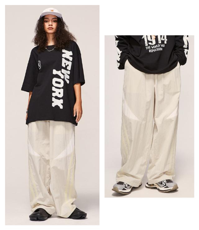ミリタリーパンツ ロングパンツ リラックス パンツ ワイドパンツ ストレートパンツ メンズ アメカジ ライン入り カジュアルパンツ ライン入り バギーパンツ ストリート系 彼氏 男性 春 秋 イージーパンツ