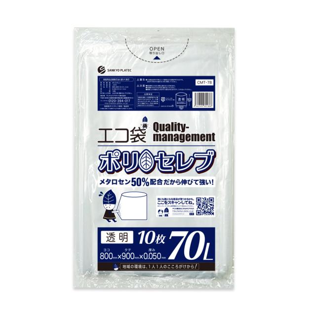 食品対応 ごみ袋 70リットル 厚手 透明 80x90cm 0.050mm厚 10枚 CMT-78bara ポリセレブ/ ゴミ袋 ごみ袋
