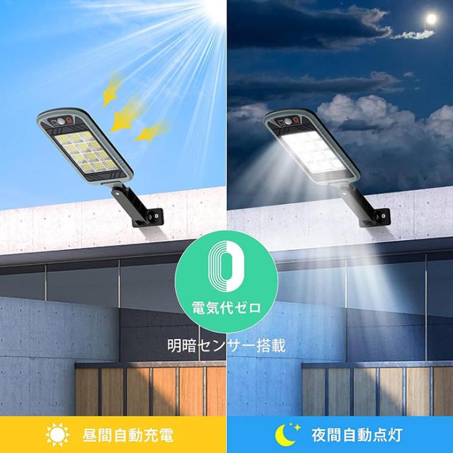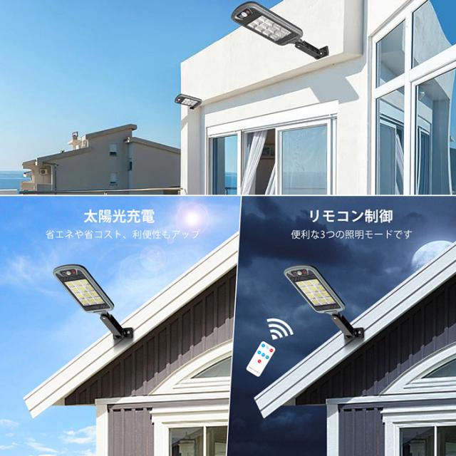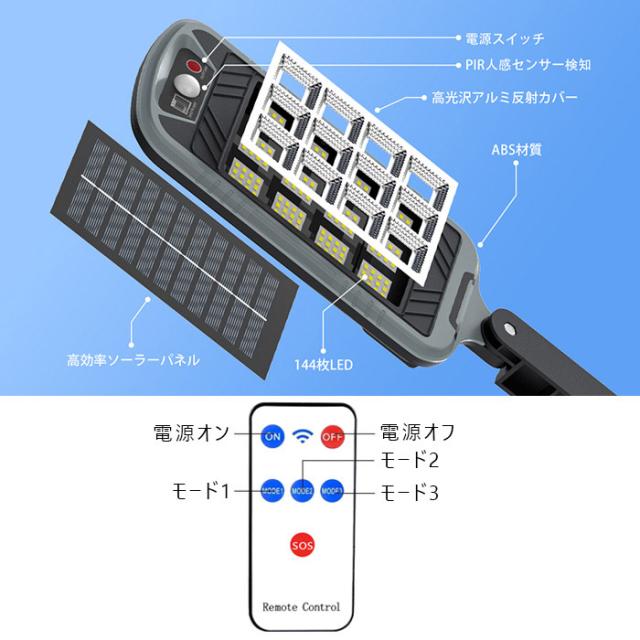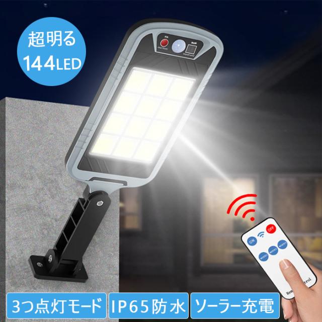 「クーポン配布中」ーラーライト 人感センサーライト ソーラーブラケットライト 144LED 昼光色 3つ点灯モード IP65防水 リモコン付き 防犯ライト 照明ライト 屋外照明 小型街灯