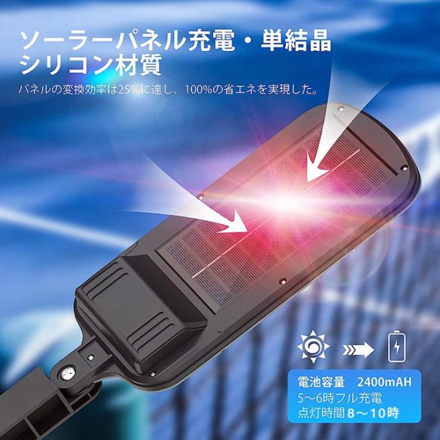 【ソーラー充電ライト】6V/3W単結晶シリコン製のソーラーパネルを採用し、太陽光を電気に変換することができる。2400mAH電池容量は6時間ほどで満充電にされ、約8-10時間の夜間照明を提供できます。