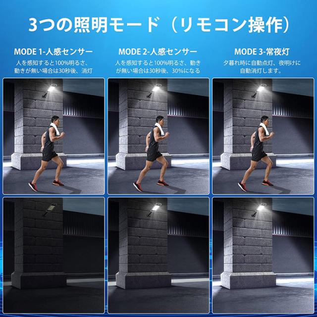【高感度センサー検知と自動点灯・消灯】高感度のPIRセンサーが搭載されており、3-6Mの動きを検出することができます。★3つの照明モード:(1)人を感知すると100%明るさ、動きが無い場合は30秒後、自動消灯。(2)人を感知すると100%明るさ、動きが無い場合は30秒後、光量は30%になる。(3)夕暮れ時に自動点灯、夜明けに自動消灯します。