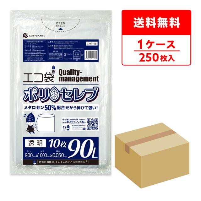 食品対応 ごみ袋 90リットル 厚手 透明 90x100cm 0.050mm厚 10枚x25冊 CMT-98 ポリセレブ/ ゴミ袋 ごみ袋 送料無料
