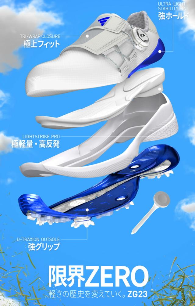 スパイクゴルフシューズパフォーマンスの概念を変えたZG21がフルモデルチェンジし、安定性・軽量性・グリップ力が前作から大きく向上したZG23。■[LIGHTSTRIKE PRO + LIGHTSTIRIKEフレーム]