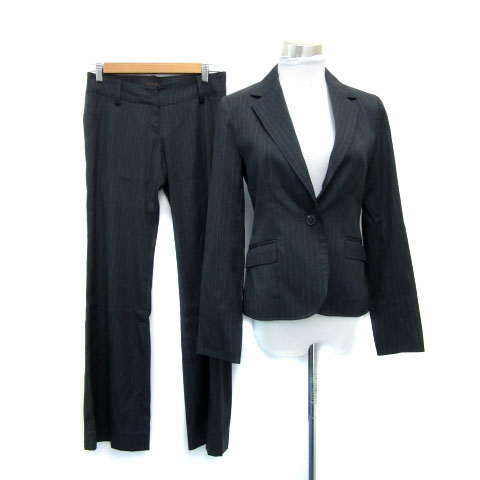 【中古】プロフィール スーツ セットアップ テーラードジャケット フレアパンツ 上36 下34 グレー レディース