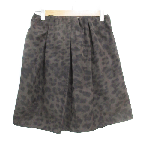 【中古】ルクールブラン フレアスカート ひざ丈 ヒョウ柄 レオパード柄 38 ダークブラウン 茶 黒 ブラック レディース