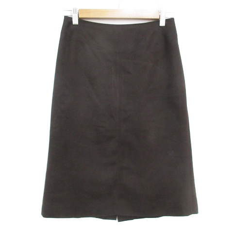 【中古】ナチュラルビューティーベーシック フレアスカート ミモレ丈 スエード調 L ダークブラウン 茶 レディース
