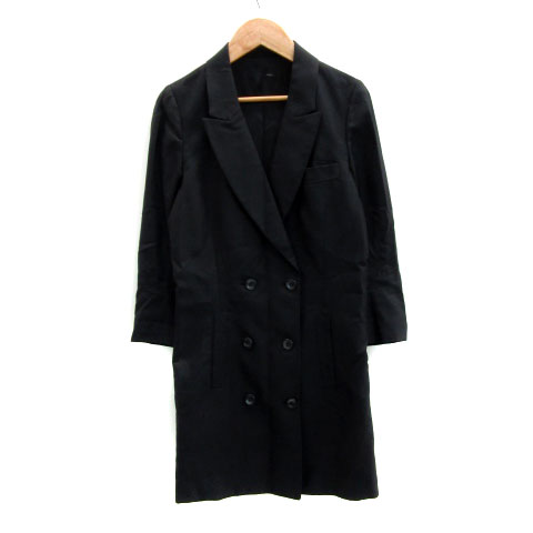 【中古】ナイン NINE テーラードジャケット ロング丈 総裏地 ダブルボタン ウール シルク混 F ブラック 黒 レディース