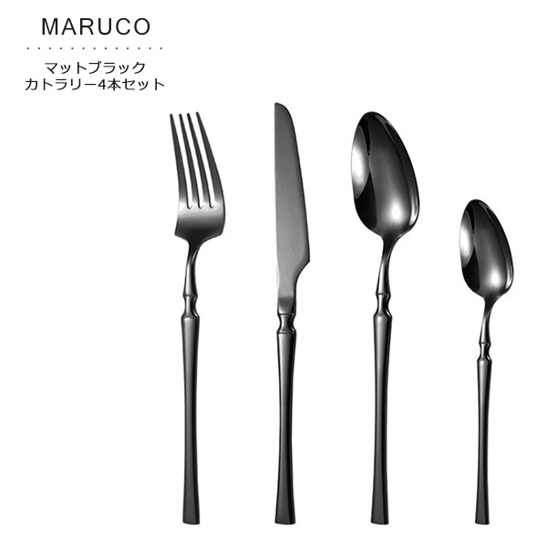 MARUCO カトラリーセット スプーン フォーク ナイフ デザートスプーン 4本セット おしゃれ かわいい カトラリー セット ブラック 北欧 食器 ステンレス ステンレス製 持ち運び キャンプ アウトドア