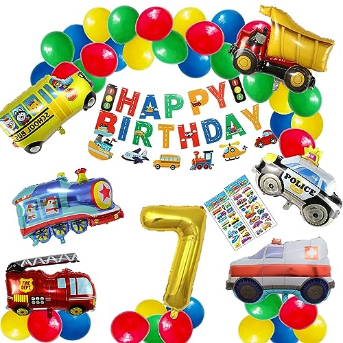 7歳 誕生日 バルーン 男の子 車 乗り物 誕生日 バルーン 風船 飾り付け セット 数字バルーン 7 付き 巨大 車 乗り物 バルーン バース