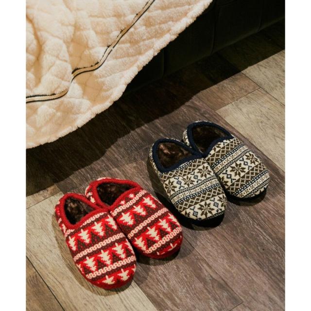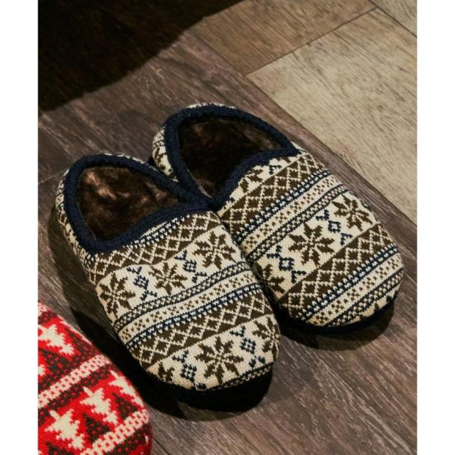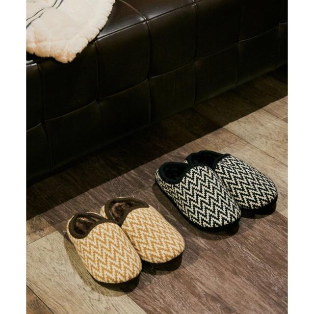 冬らしいニット素材のルームシューズ。