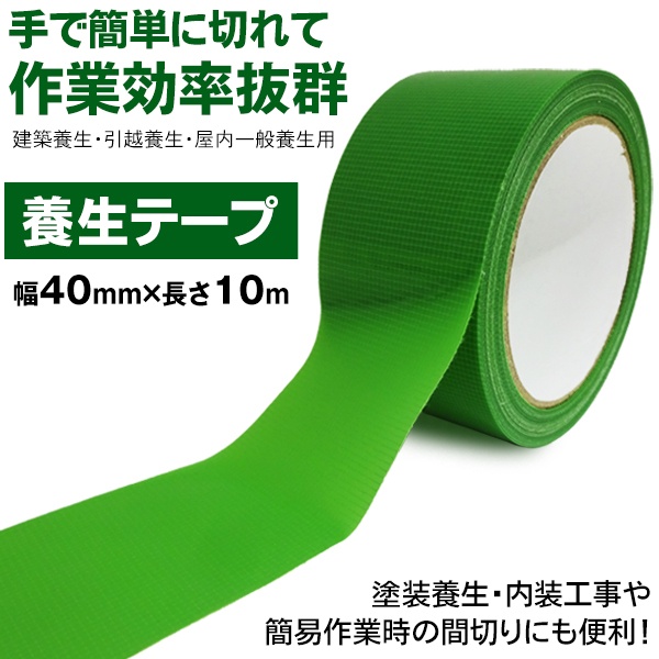 養生テープ 幅4cm×長さ10m 手でまっすぐ切れる 剥がしやすい 字が書ける 養生用 仮止め 作業 内装工事 家具 キズ防止 引っ越し カットテープ 1巻 ついで買い特集【 台風 防災グッズ 窓 ガラス テープ 引越し 車 塗装作業 まとめ買い 】 /60N◇ 養生T
