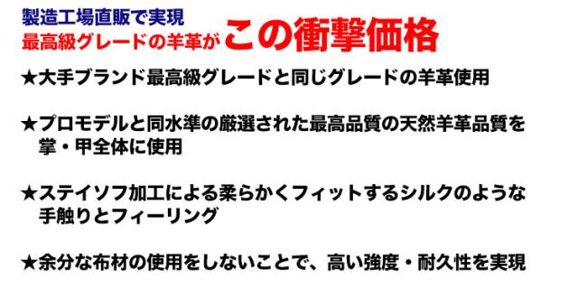 ただ最高品質の天然羊革を、掌・甲全てに使用。
