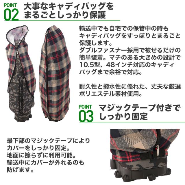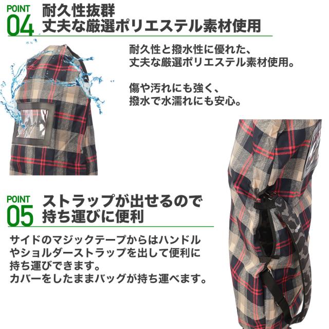 【OOWLS 軽量高耐久ゴルフバックカバー トラベルカバー】・ダブルファスナー採用で被せるだけの簡単装着