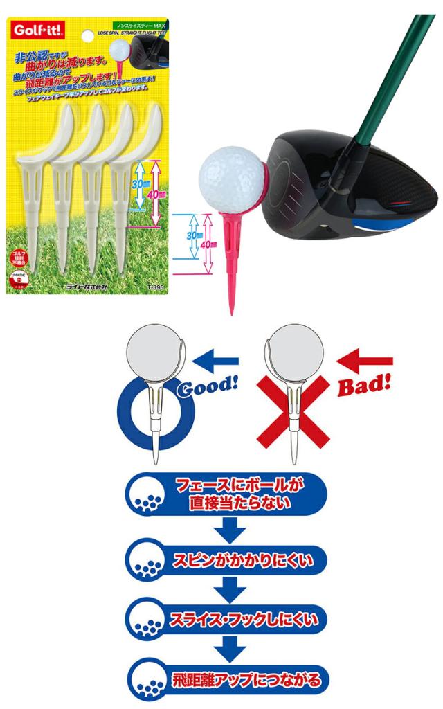 クラブフェースにゴルフボールが、直接当たらないためスピンがかかりにくく、スライスやフックがしにくくなり、曲がりが減るためスライスやフックで飛距離をロスしているゴルファーにはとても効果