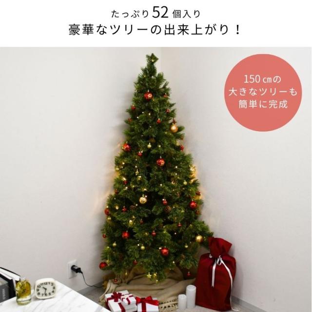 クリスマス 3色から選べるオーナメントセット 52個