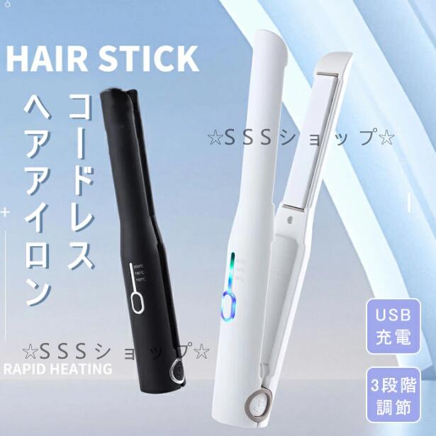 コードレスヘアアイロン 3段階調節 ミニヘアアイロン USB充電式 ヘアアイロン ストレートアイロン ヘアアイロン