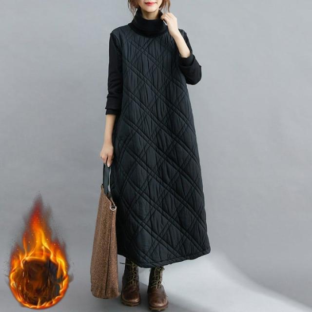 ワンピース ハイネック ワンピ ロング キルティング レディース 長袖 モード系 秋冬 タートルネック レトロ 個性的 ゆったり Aライン 黒 大人 きれいめ