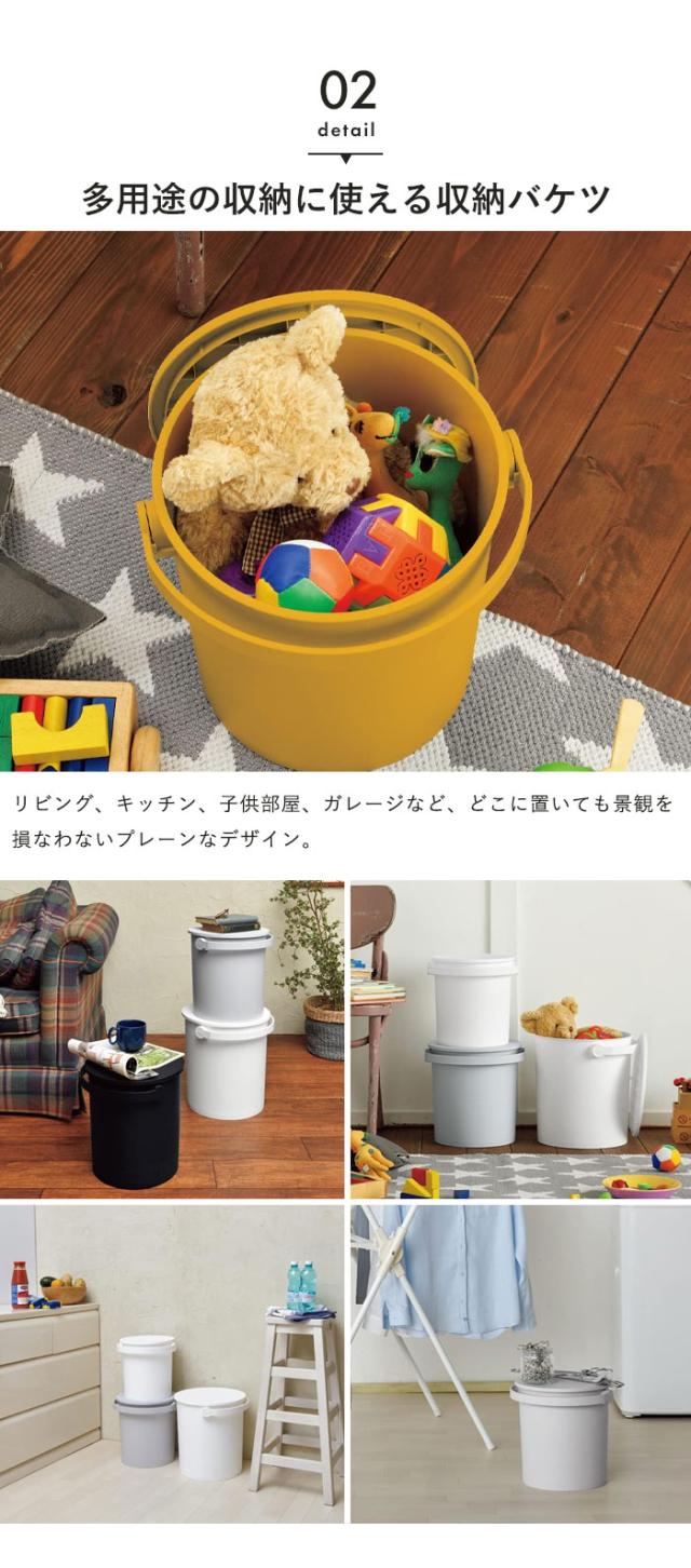 | \お得な同色4個組/ 日用品からおもちゃ入れ、掃除用品の収納など多用途で活躍する耐荷重150kgの座れるバケツ。 耐荷重が十分になるので、簡易スツールとしてお子様から大人まで座ることができ、ちょっとしたテーブルとしても使用可能。 フタは本体のフチやハンドル部分に引っ掛けることができるので、開閉時や空けたままにしたい時にもフタが床につかず清潔にお使いいただけます。 持ち運びに便利なハンドル付きで片手でサッと持てるので移動もラクラク。 リビング、キッチン、子供部屋、ガレージなど、どこに置いても景観を損なわないシンプルなデザイン。 サイズは10L・15L・20Lの3種類、カラーは10L・20Lはホワイト・ブラック・ライトグレーの3色展開、15Lはブラック、ブルー、グリーン、ライトグレー、ホワイト、イエローの6色展開。 |
