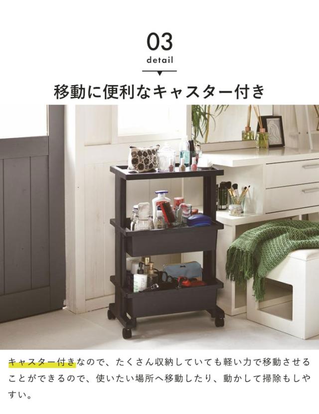 テーブルワゴン 3段 おしゃれ 日本製 デスク収納 サイドワゴン デスクワゴン キャスター付き 幅45 奥行30 高さ71.5 ベビーワゴン