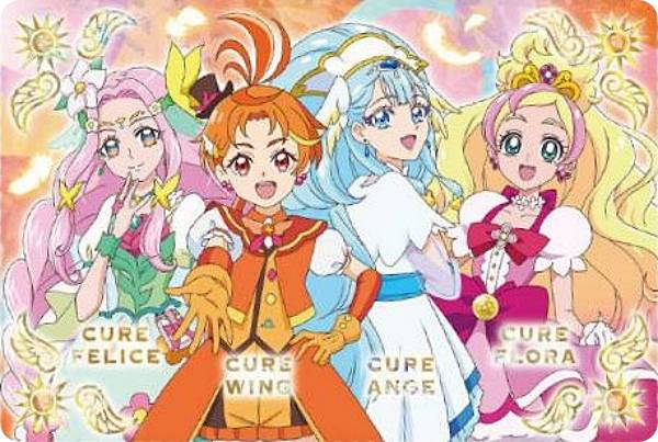 【[ホロレアカード] P12 キュアウィング&キュアアンジュ&キュアフェリーチェ&キュアフローラ】映画プリキュアオールスターズF キラキラカードグミ ※カードのみ