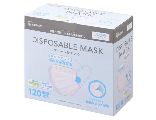 アイリスオーヤマ マスク 不織布 120枚 ディスポーザブル プリーツ型 ふつうサイズ 20PN-120PM アイリス アイリスマスク 花粉対策 ウイルス対策 感染症対策