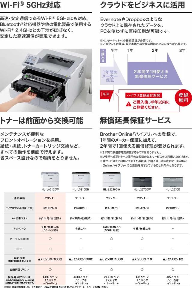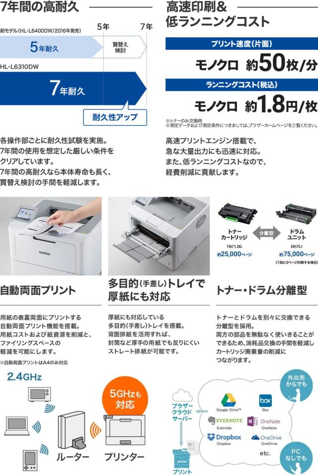 単品購入のみ可(同一商品であれば複数購入可) クレジットカード決済 代金引換決済のみ HLL6310DW 高速プリント&7年高耐久。フラッグシップモノクロプリンター。モノクロ A4片面 約50枚/分の高速印刷を実現。
