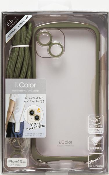 NATURALdesign IP23-61-ICSH06 iPhone15(6.1inch/2眼)/14用 背面型ハイブリッドケース I.COLOR(カーキ)[IP2361ICSH06] 返品種別A