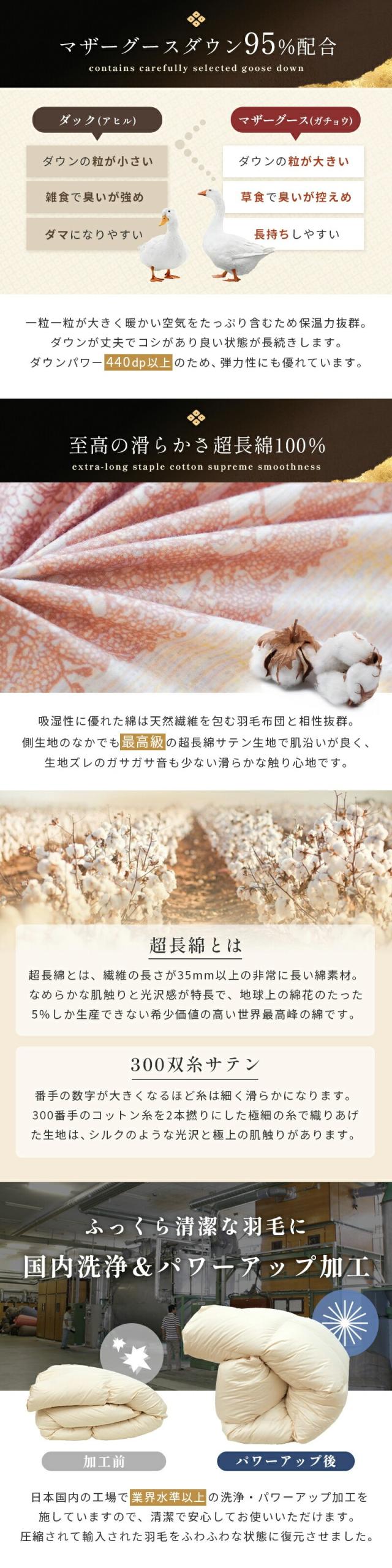 羽毛布団 シングル 羽毛掛け布団 ロング グース 掛け布団 マザーグース ダウン95% あったか 冬 150×210 440dp 日本製 京都羽毛 「金」 増量1.3kg