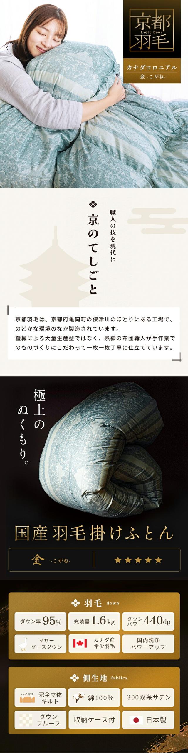 [ keyword | 羽毛布団 セミダブルロング マザーグースダウン95% 170×210cm 完全立体キルト 京都職人の羽毛布団 増量1.6kg 440dp以上 日本製 京都羽毛 「金」 カナダ グース コロニアルダウン 綿100% セミダブル 秋冬 金銀銅 ]