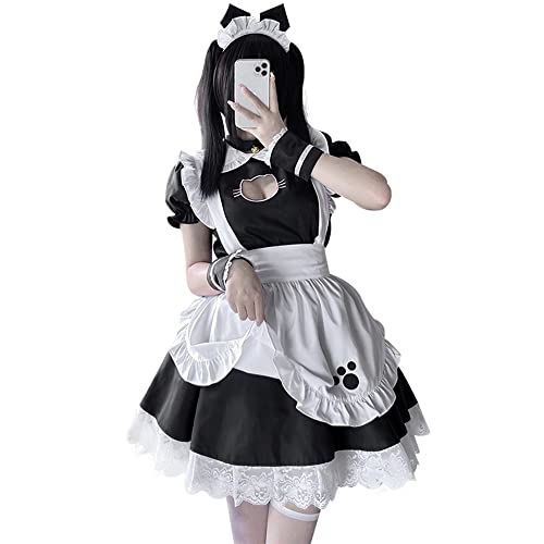 RPFLQ メイド服 猫 M コスプレ ハロウィン 仮装 レディース セクシー エプロン カチューシャ 衣装 可愛い 大人用 ワンピース ス