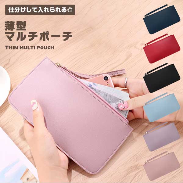 ポーチ スリム 軽量 通帳ケース マルチポーチ 大容量 薄型 診察券 かわいい レディース シンプル おしゃれ 家計管理 通帳 印鑑 お金 管理 送料無料