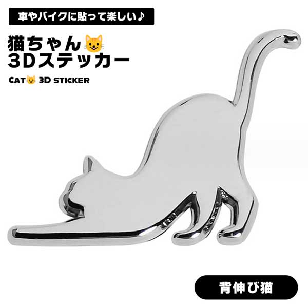 猫 3D ステッカー 背伸び猫 エンブレム 車 ねこ デカール ネコ 可愛い お洒落 シルバー 3Dステッカー 防水 アクセサリー 面白い カーステッカー 車用 バイク 飾り スーツケース キズ隠し 送料無料