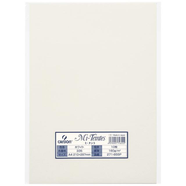 パステル画やペーパークラフトに適した高品質の色画用紙。<br>世界でも高いシェアを誇る大人の色画用紙です。<br>【サイズ】A4 【本体寸法】縦297x横210mm<br>【本文】10枚<br>【Made in France】フランス製の高品質な色画用紙です。<br>◆商品名:マルマン 色画用紙 ミタント 271-655P A4 10枚 ホワイト<br>●作品に表情が出せるハニカム状の紙肌