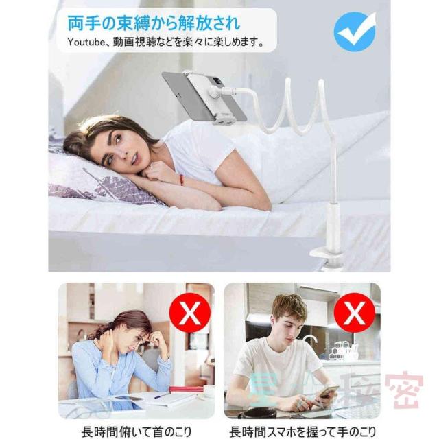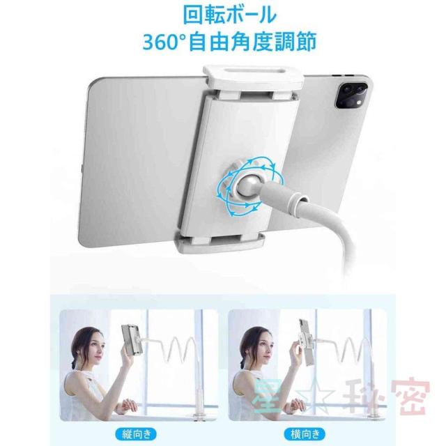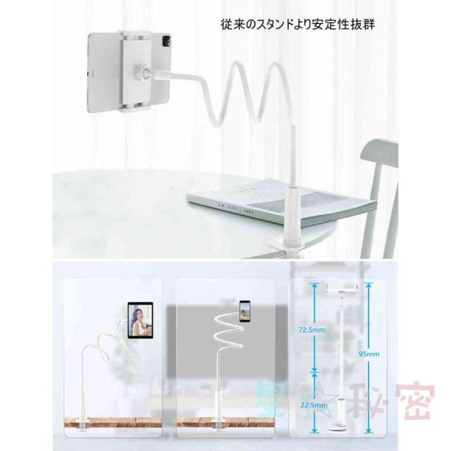 360°回転 角度調整可能 土台強化 安定性 寝ながら フレキシブルアーム アーム延長版 ビング/寝室/オフィス/キッチン/浴室/旅行に適用 多機種対応スタンド