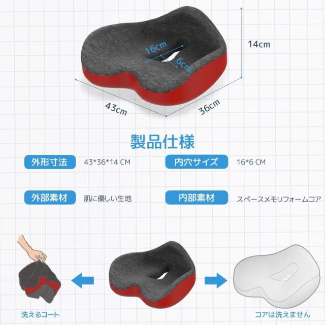 【高品質の低反発フォーム&高通気メッシュ生地】 サイズ:(約)縦36x横45x厚さ5-14cm。厚いクッションは弾力性が高く、サポートも優れています。低反発クッションの高密度フォームが均一に分散され、チェアクッションの耐久性を高めています。カバーはメッシュ生地、蒸れにくいです。カバーにはファスナー付きで、カバーを取り外して洗えるので、お手入れも簡単。