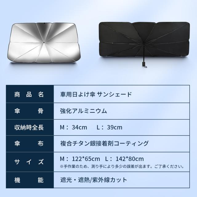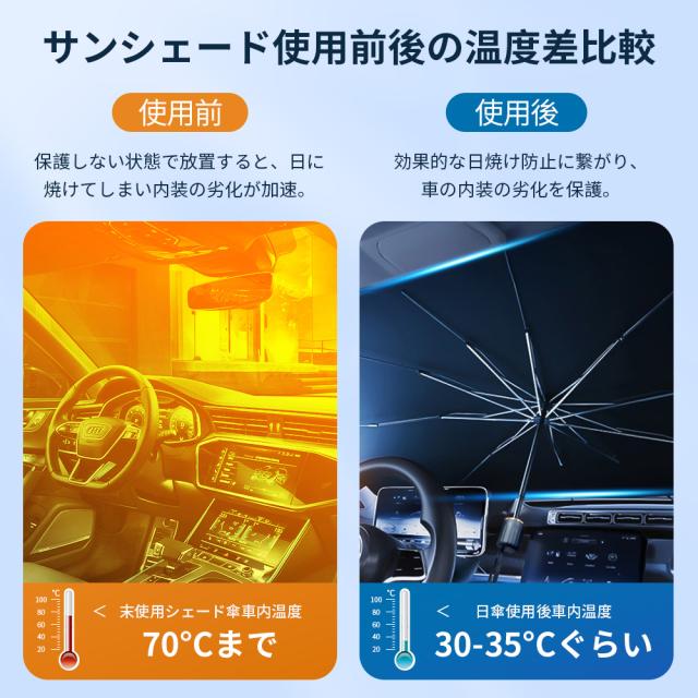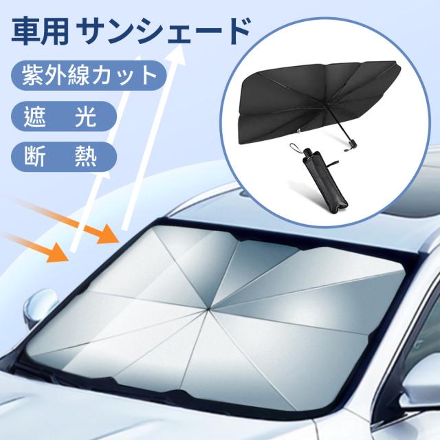 サンシェード 傘型 車用 フロント 折りたたみ傘 フロントカバー 遮光 断熱 10本骨 カーサンシェード 日除け コンパクト 日よけ 紫外線対策 uvカット プライバシー保護 フロントサンシェード 折り畳み式 収納便利 簡単操作 車種汎用 自動車 2サイズ