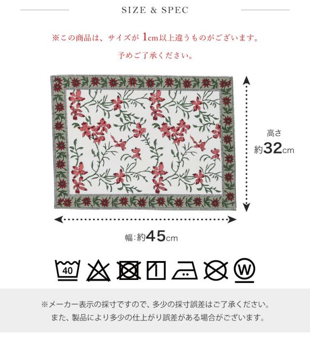 インド特有の華やかな柄デザインのランチマット。 お部屋の雰囲気を変えたいときなどに手軽に取り入れられる、オススメのアイテムです。 しっかりとした素材感なので、ランチマット意外にも小物雑貨を置く際のマットにしても〇 パッとお部屋を明るく彩ってくれます。