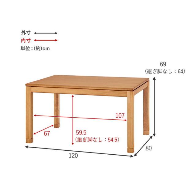 ダイニングこたつテーブル ハイタイプ 長方形 120×80cm 高さ64-69cm おしゃれ 木製 家具調 リビング ソファー 高さ調節 継脚付き