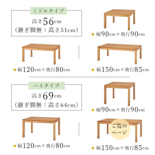 ダイニングこたつテーブル ハイタイプ 長方形 150×85cm 高さ64-69cm おしゃれ 木製 家具調 リビング ソファー 高さ調節 継脚付き